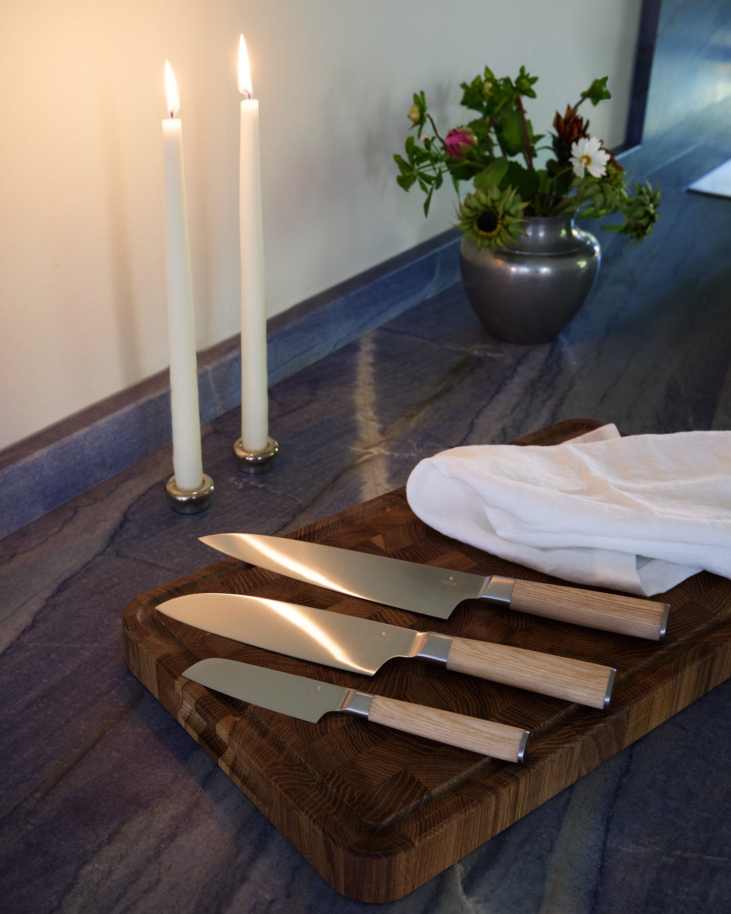 I love the look of the kitchenware, but it’s the quality that makes me never want to cook with anything else. I use the knives, cutting boards, the trays for baking and more.