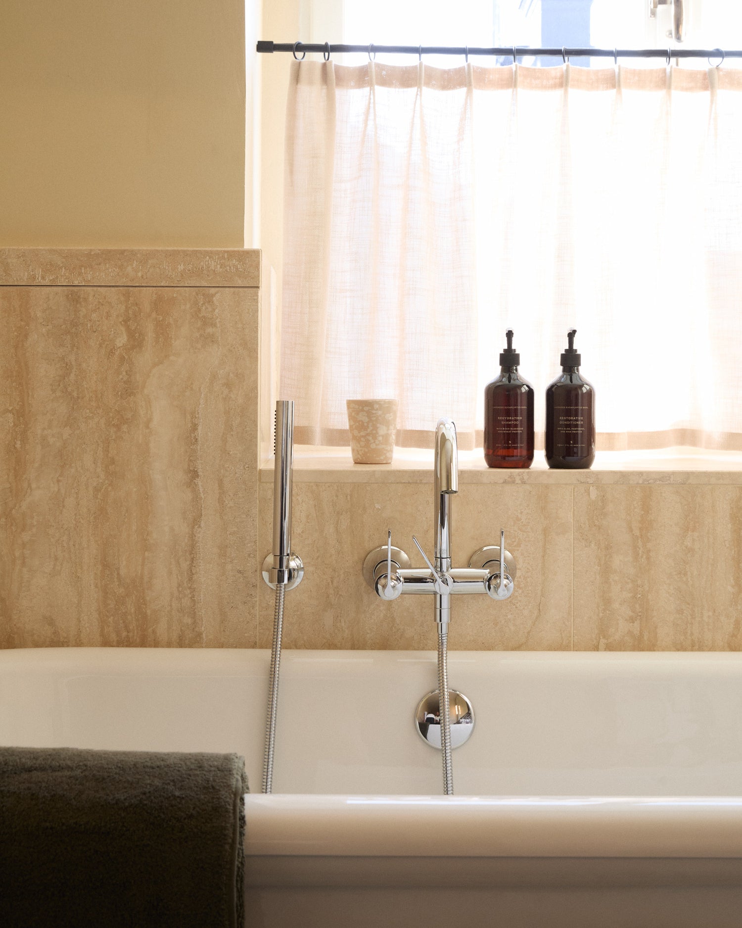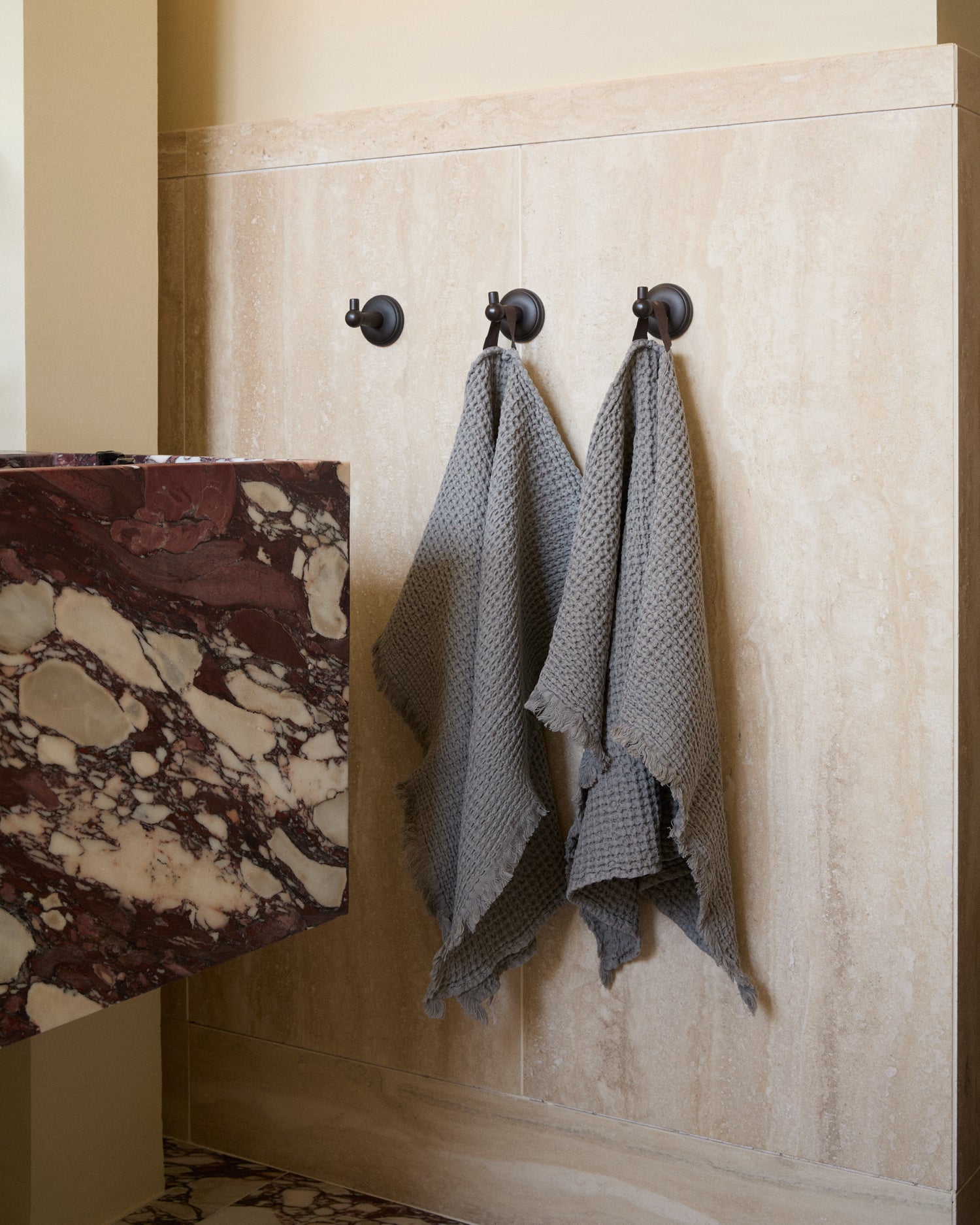 - I love natural stones. Every day I look at the travertine stone in the kitchen or the Breccia Viola marble in the bathrooms and just melt – they are so beautiful! As for how to combine everything, you’ll need to ask our interior designers. We worked with Look Interiors when we renovated the apartment, and they really made it the most beautiful home. I’m so thankful for them!