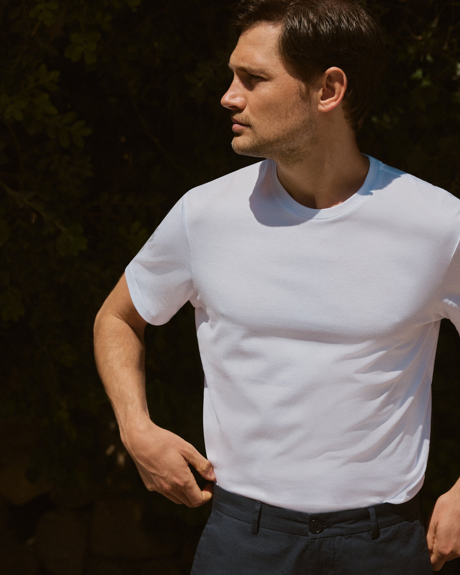 Sunny streets, slow mornings, and balmy evenings – summer in the city calls for ease, lightness, and thoughtful pieces that move effortlessly with you. Our selection of warm-weather essentials is designed with understated elegance and crafted from refined materials like Italian cotton and European flax linen. Think crisp linen sets, breathable piqué polos, timeless chinos and soft tees. Top it off with soft espadrilles and sunglasses – made for the season, made to last.
