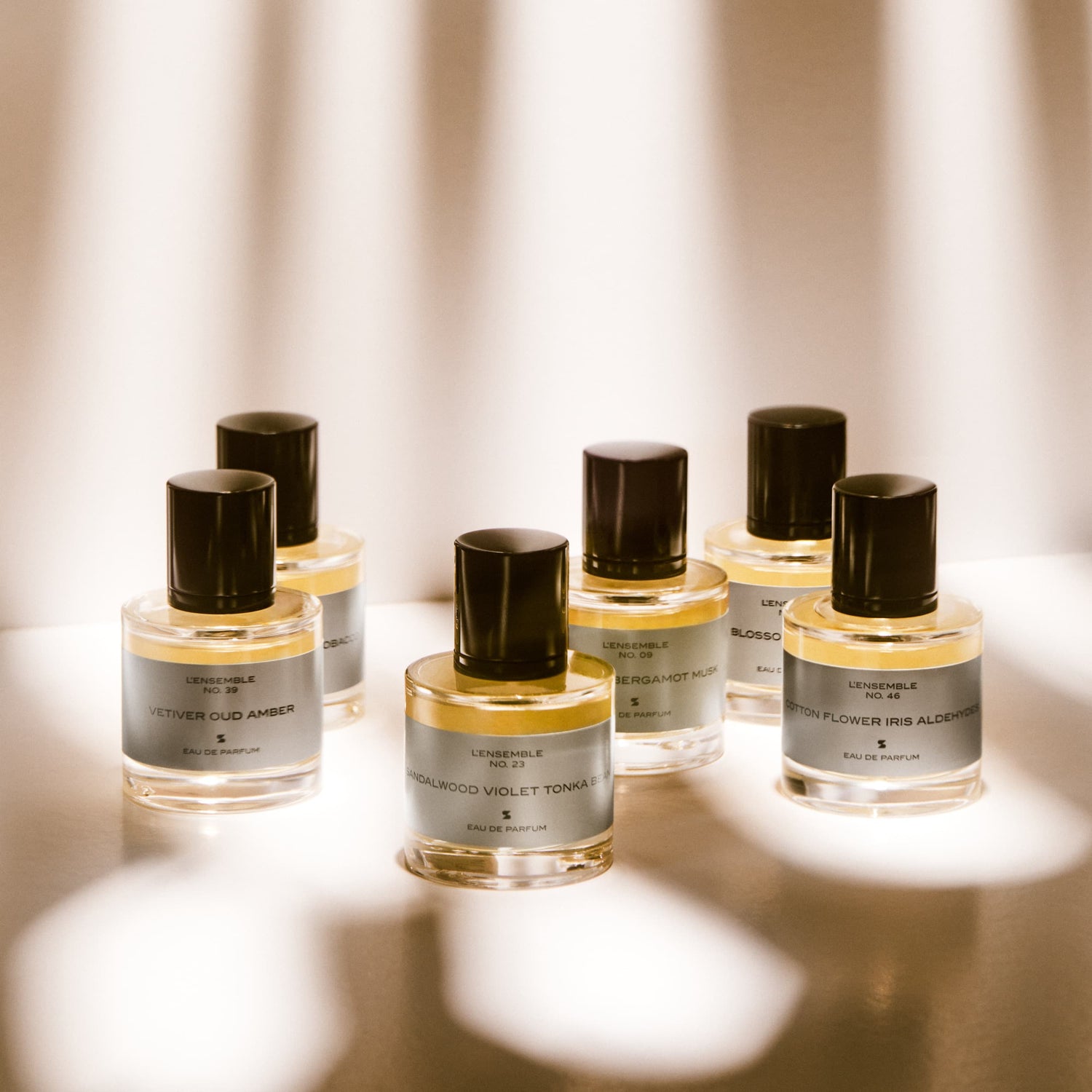 L’ensemble Nº23 Sandalwood Violet Tonka Bean is the ultimate dream for those who love sandalwood, with elevated woody tones throughout the fragrance. Exclusive notes of sandalwood are balanced by a subtle touch of tonka beans in the base. This is a luxurious perfume with a warm sensation and an elegant allure. Simplicity at its best.