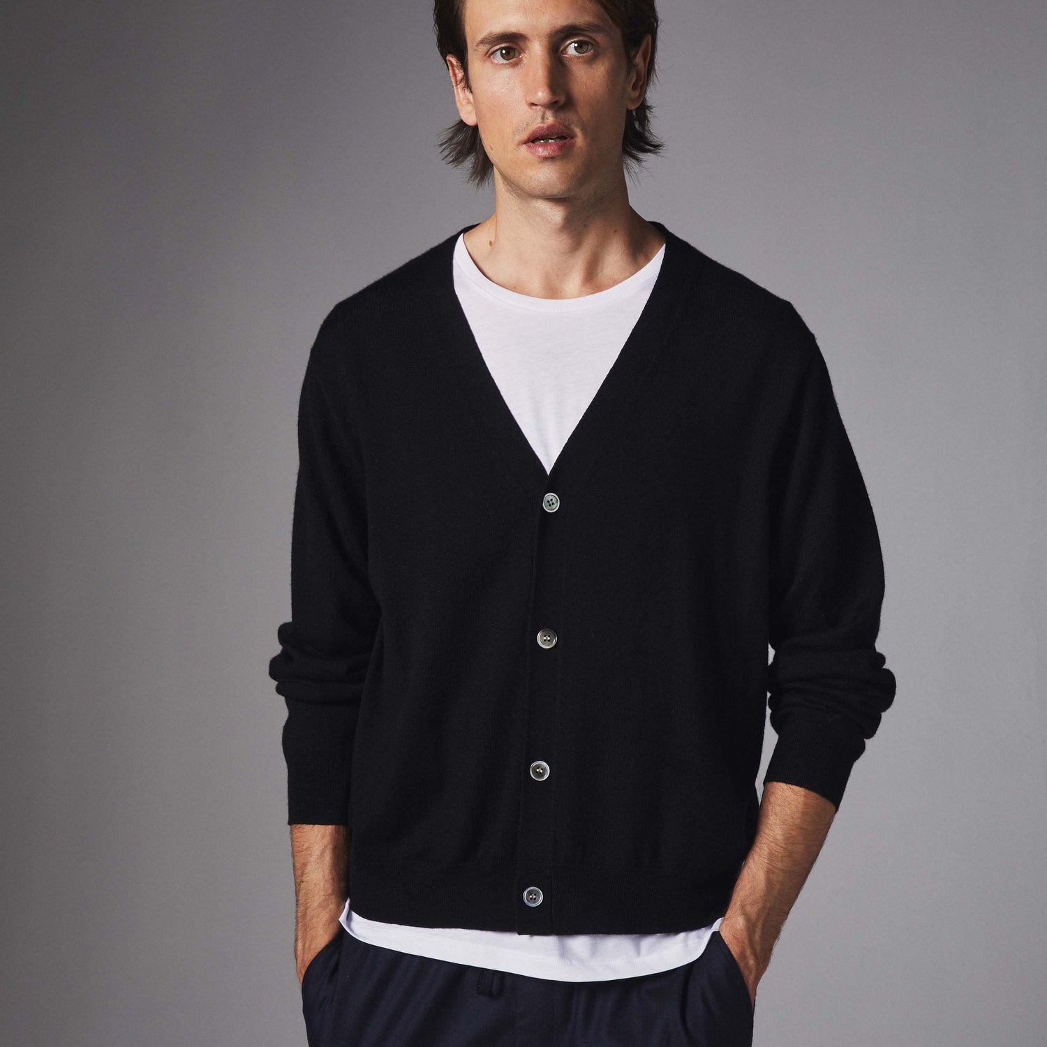 Our men’s cardigans bring structure and warmth with timeless appeal. Buttoned and effortlessly stylish, these pieces work well over shirts and t-shirts for a refined yet comfortable look.