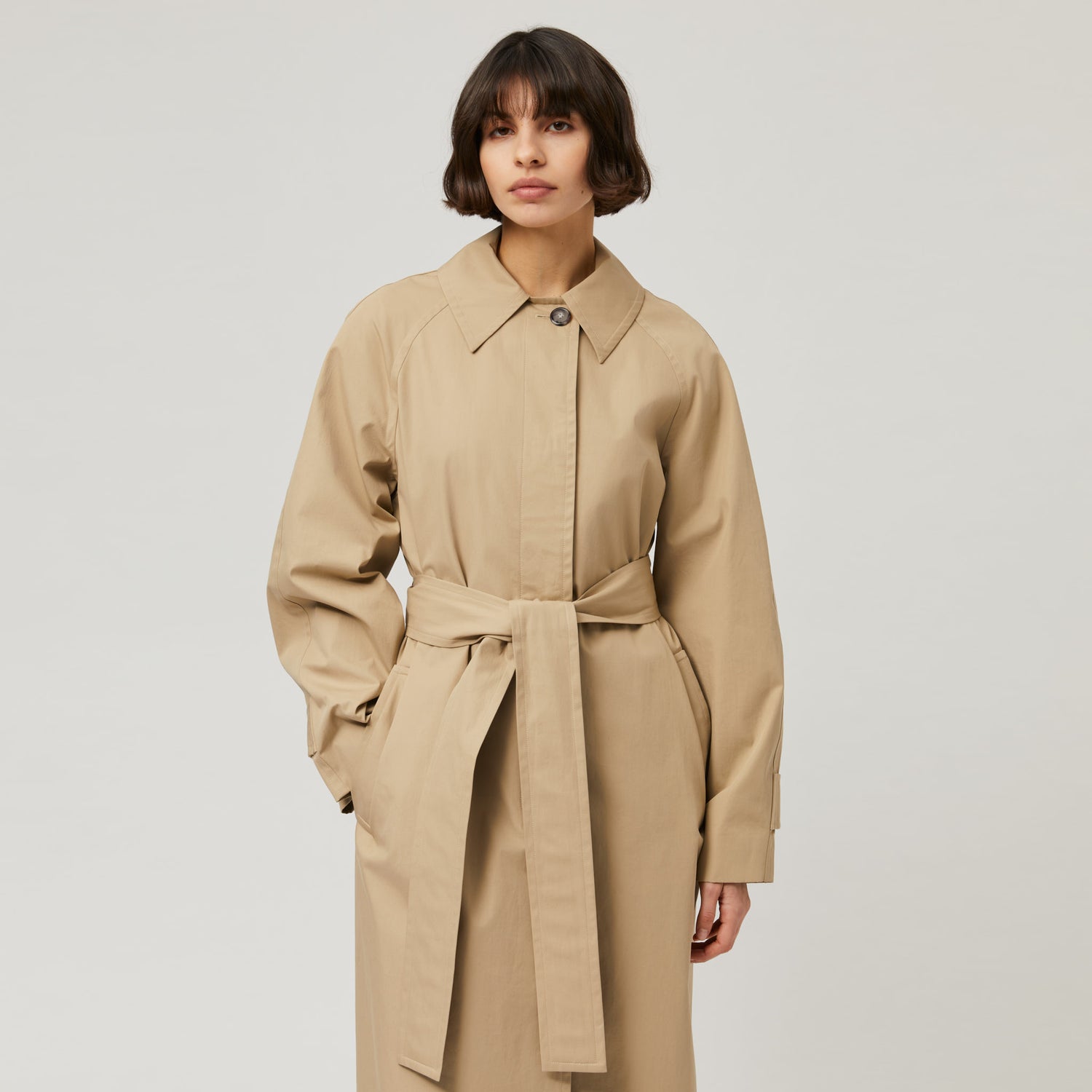 – Our Cotton Twill Trench Coat is a contemporary take on the traditional trench coat design, scaled down to emphasize timeless elegance. It’s manufactured by Petratex in Portugal and the material comes from the legendary Italian mill Beste – 100% compact ultra-fine cotton twill with a water-repellent finish. It’s fully lined and comes with 11 horn buttons. Regular fit and raglan sleeves, a storm flap at the collar, two welt pockets on the outside and three welt pockets on the inside. This coat is really comfortable and you can wear it all year round if you layer up.