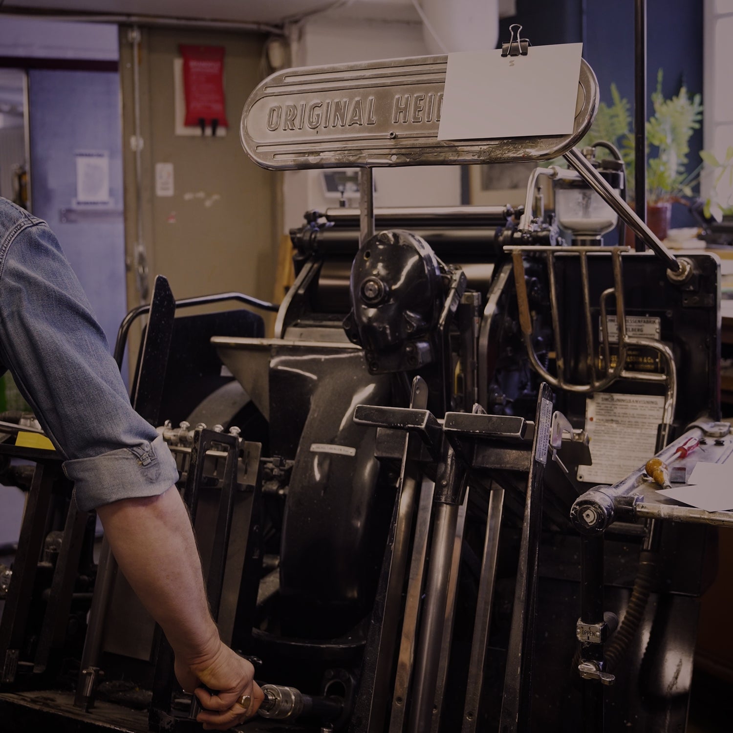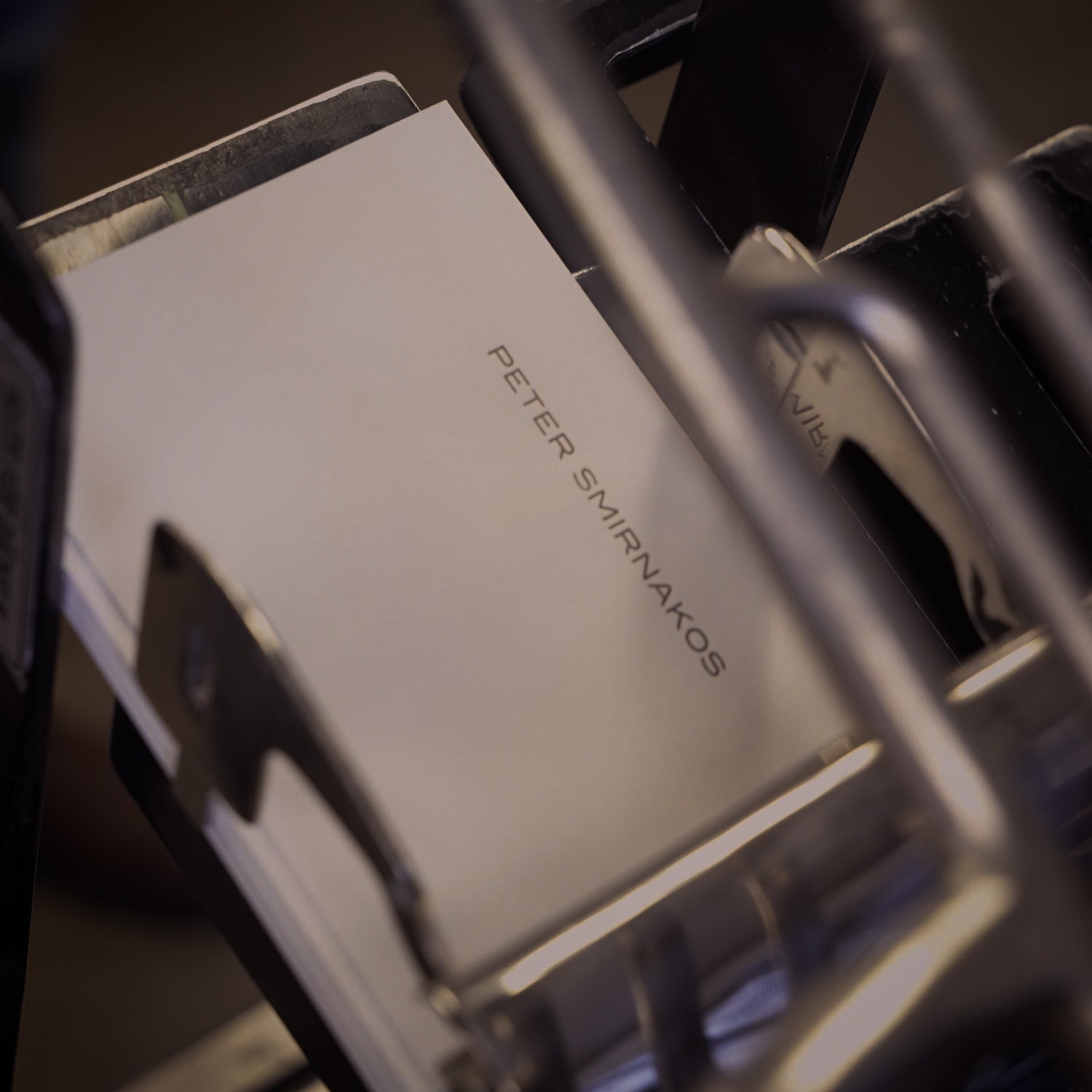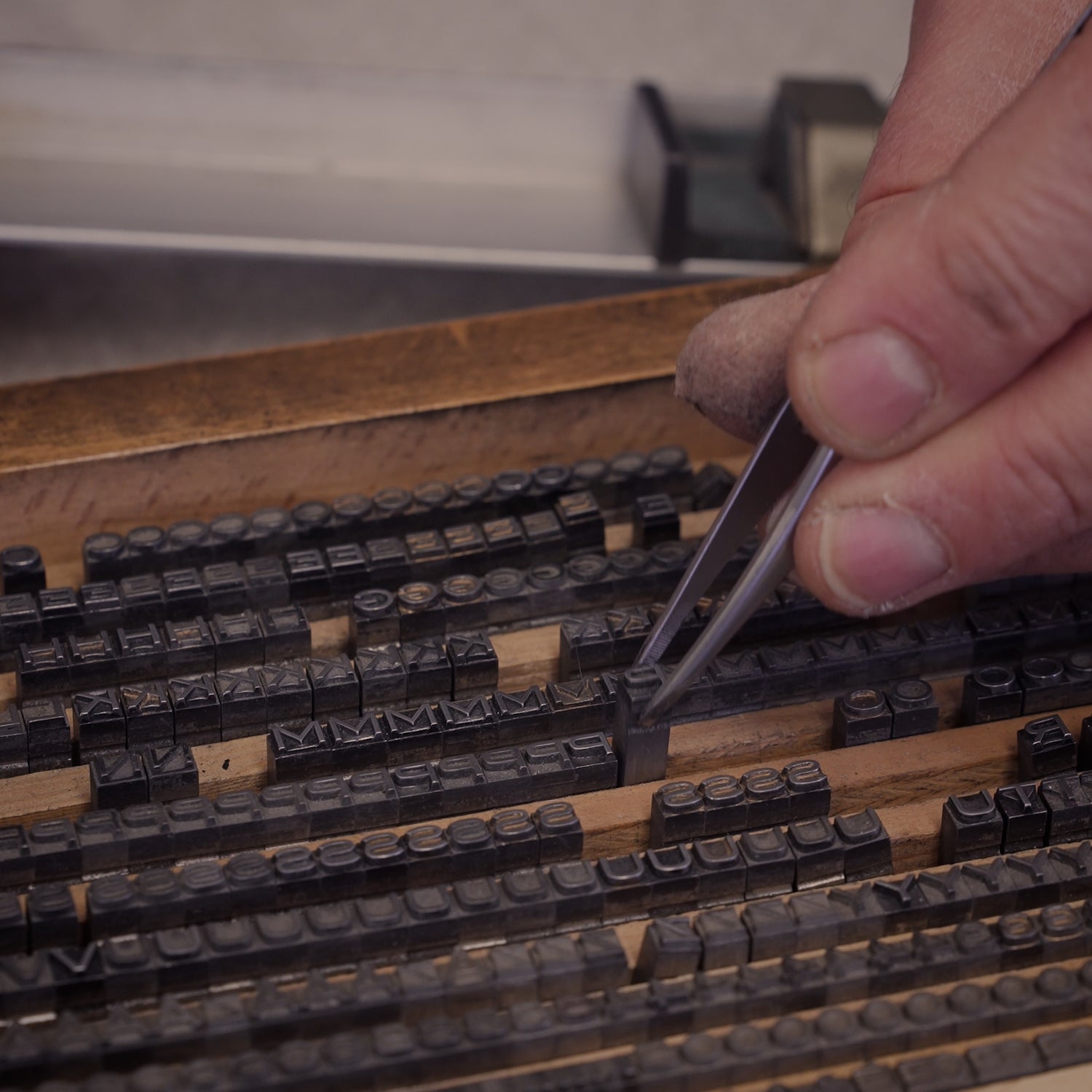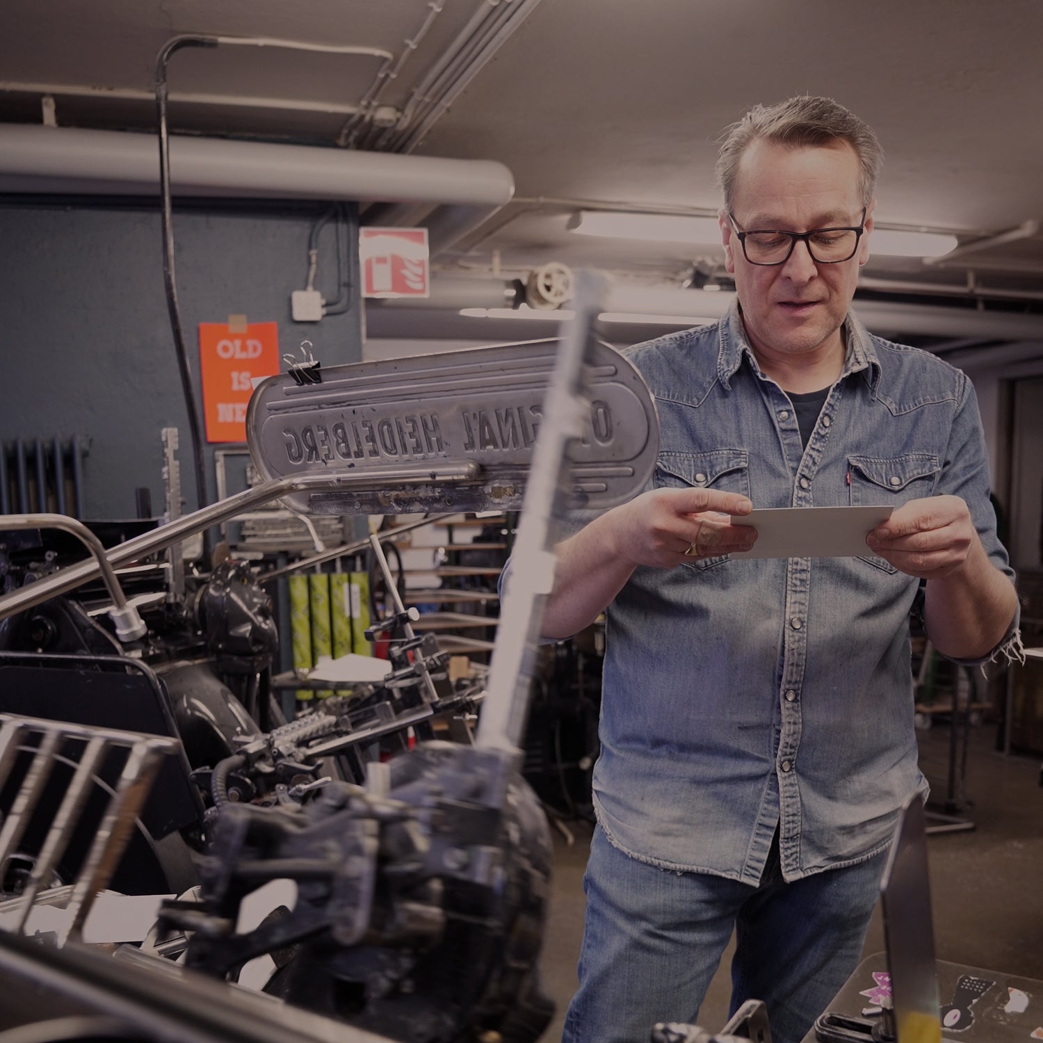 Each piece is printed by hand with original Heidelberg machines from the 1950s, using a traditional letterpress print technique with original lead types.