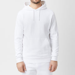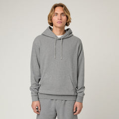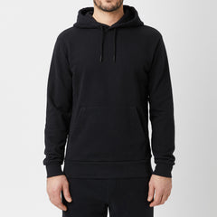 Made from a combination of recycled and organic cotton, with a peached, smooth surface, this cotton-jersey hoodie will take comfort to the next level. Super soft loopback knit on the inside (the name comes from the traditional knitting machine ”loopwheel”) creates a fabric that is both lighter and more resistant to pilling than traditional fleece. The hoodie has a top applied front pocket and plastic cord ends. The fit is not too tight nor is it oversized, which allows you to wear it under any light jacket, and if you prefer a more generous fit, just go up in size. The incredible softness from this relaxed hoodie will take you through any day. Combine with our loopback sweatpants or sweatshorts for a perfect match.