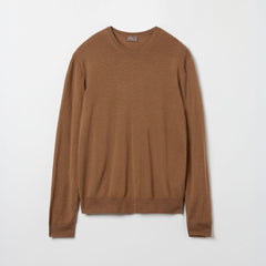 As the temperature drops, our needs and expectations for crewneck sweaters also shift. They remain a staple for layering over T-shirts, effortlessly elevating our outfits with comfort and warmth. However, we often seek a lighter and more breathable option. Enter the Merino Crewneck – a soft, lightweight, and highly breathable choice, crafted from Australian superfine merino wool in a 14-gauge, 1-ply knitting quality. It is designed to endure in a timeless and classic cut with a round neck and regular fit.