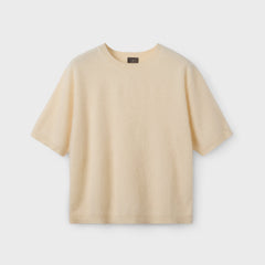 Indulge in everyday elegance with our Brushed Cashmere Tee. Crafted from brushed 100% Cashmere yarn in a 12-gauge, 1-ply quality, this short-sleeve tee offers a relaxed fit and incredible softness for ultimate comfort. Its lightweight yet cozy construction makes it perfect for layering or wearing on its own. Care for it and it will last for many seasons to come.