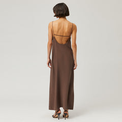 The soft, fluid texture of this full-length dress with a side slit will make them the perfect companion for many occasions, keeping you comfortable and stylish from day to night. The opened back design with spaghetti straps and a horizontal back strap provides both comfort and function. The adjustable straps can be adjusted to your liking with a hidden knot in the back seam.
